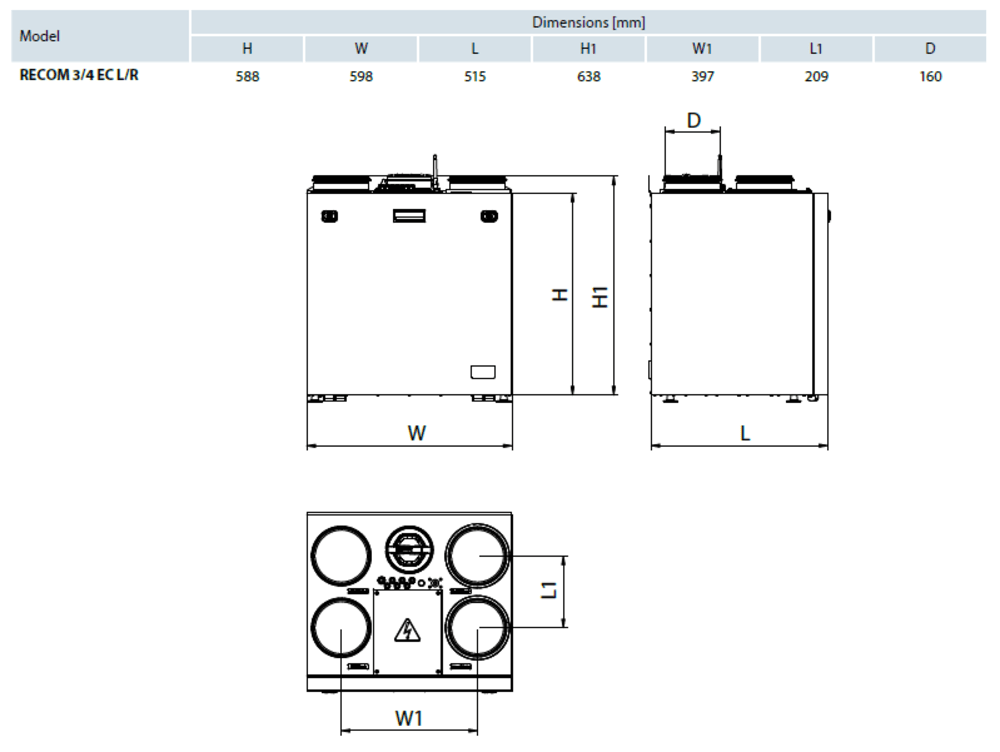 Recom 3SR vėdinimo įrenginio techniniai duomenys: