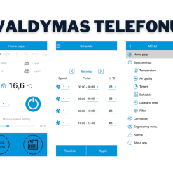 Rekuperatorius turi integruotą valdymą telefonu. Norint valdyti pulteliu, būtina jį įsigyti papildomai.